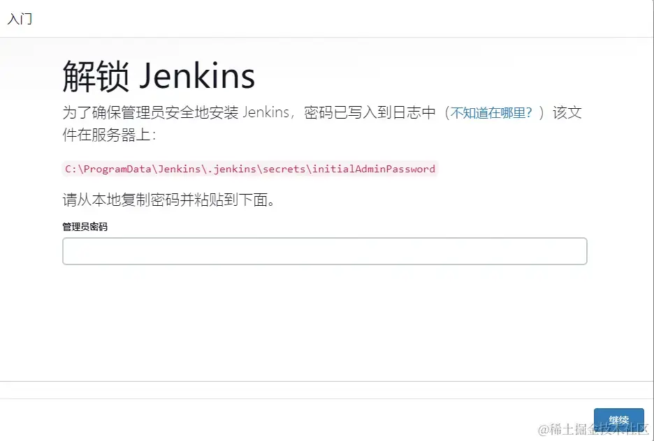 第一次会弹出下面窗口,按提示去获取密码填入,继续下一步。