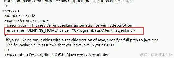 在jenkins安装路径(上面安装步骤有设置安装路径)里找到jenkins.xml,打开,修改里的value值,关闭jenkins服务避免文件占用,将原目录的.jenkins文件夹移动到新目录后重启服务。