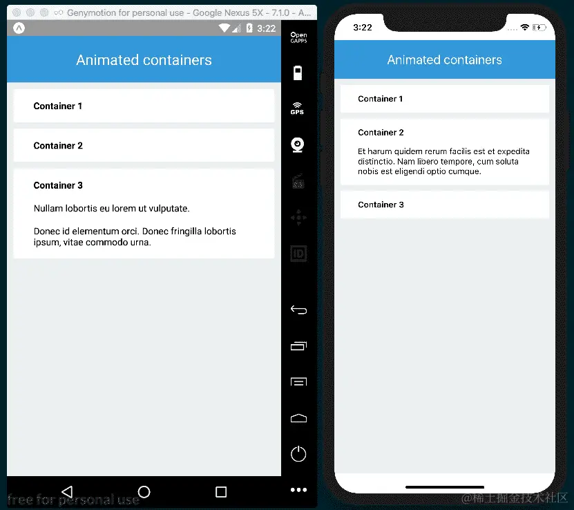 正在进行一个倡议,将所有处理从 JavaScript 移至本地端。在撰写本文时(React Native 版本 0.58),我们可以选择使用本地驱动程序在本地世界中运行所有这些计算。不幸的是,这不能用于所有动画,特别是与布局相关的动画,比如 flexbox 属性。在文档中阅读有关使用本地动画时的注意事项的更多信息facebook.github.io/react-native/docs/animations#caveats。