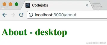 http://localhost:3000/about网址,您将看到连接了 Redux 状态(isMobile)的About组件:
