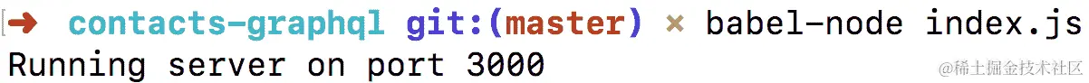 babel-node index.js,您应该能够看到运行在端口 3000 上的节点服务器: