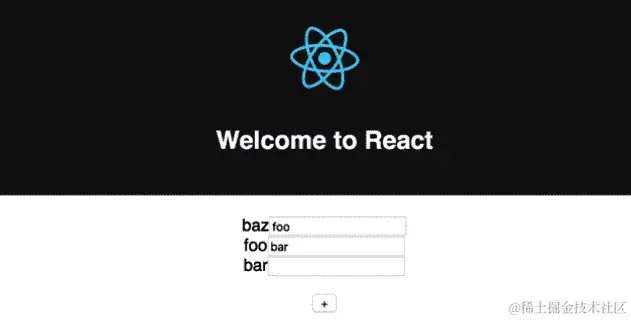 最后,在render中,我们显示列表和+按钮,以在列表顶部添加baz项目: