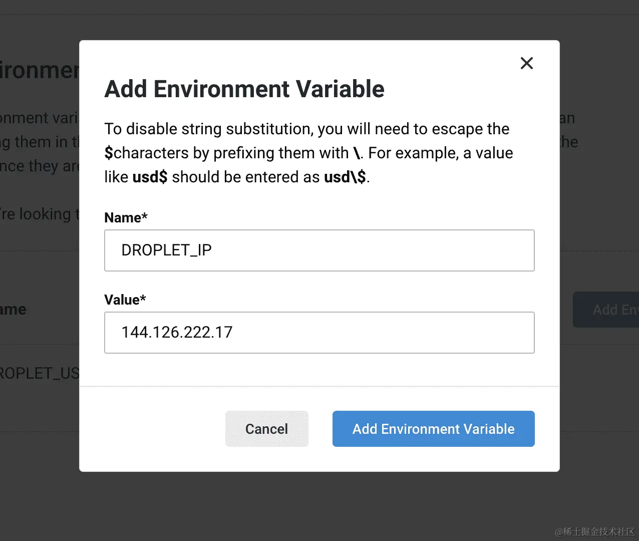 DROPLET_IP变量: