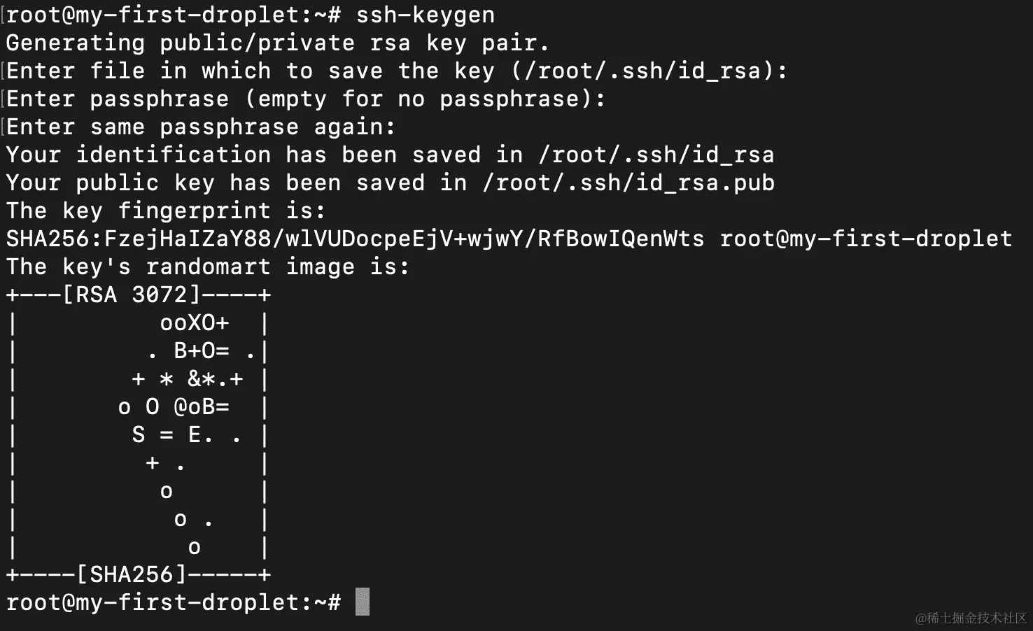 - 创建 Droplet SSH 密钥后,您可以通过运行以下命令查看它: