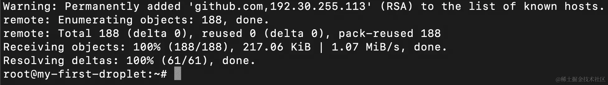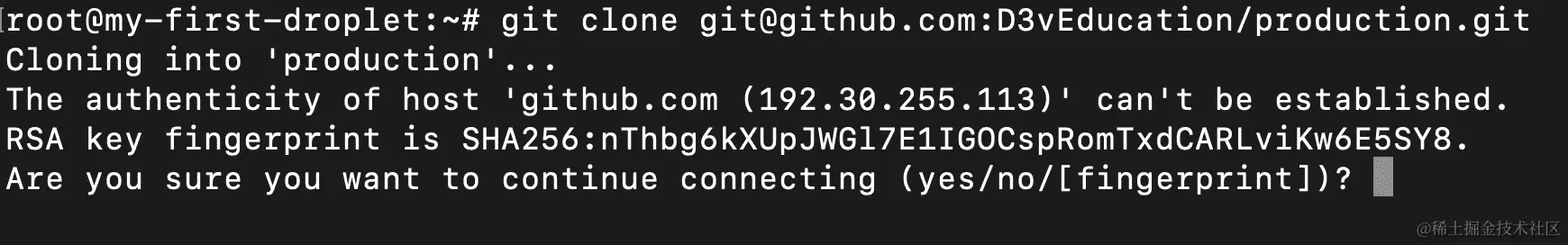 - 当您第一次克隆它时,您将收到一条消息,询问您是否允许 RSA 密钥指纹: