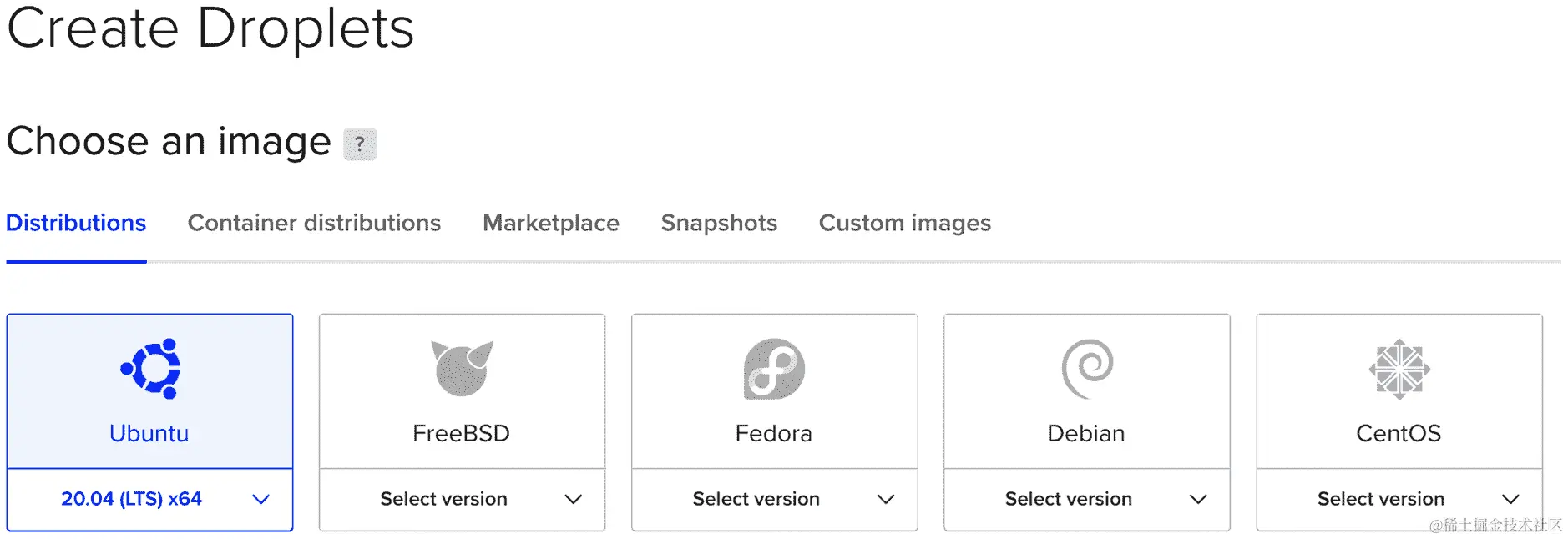 我们将从头开始创建一个新的 Droplet。按照以下步骤操作: