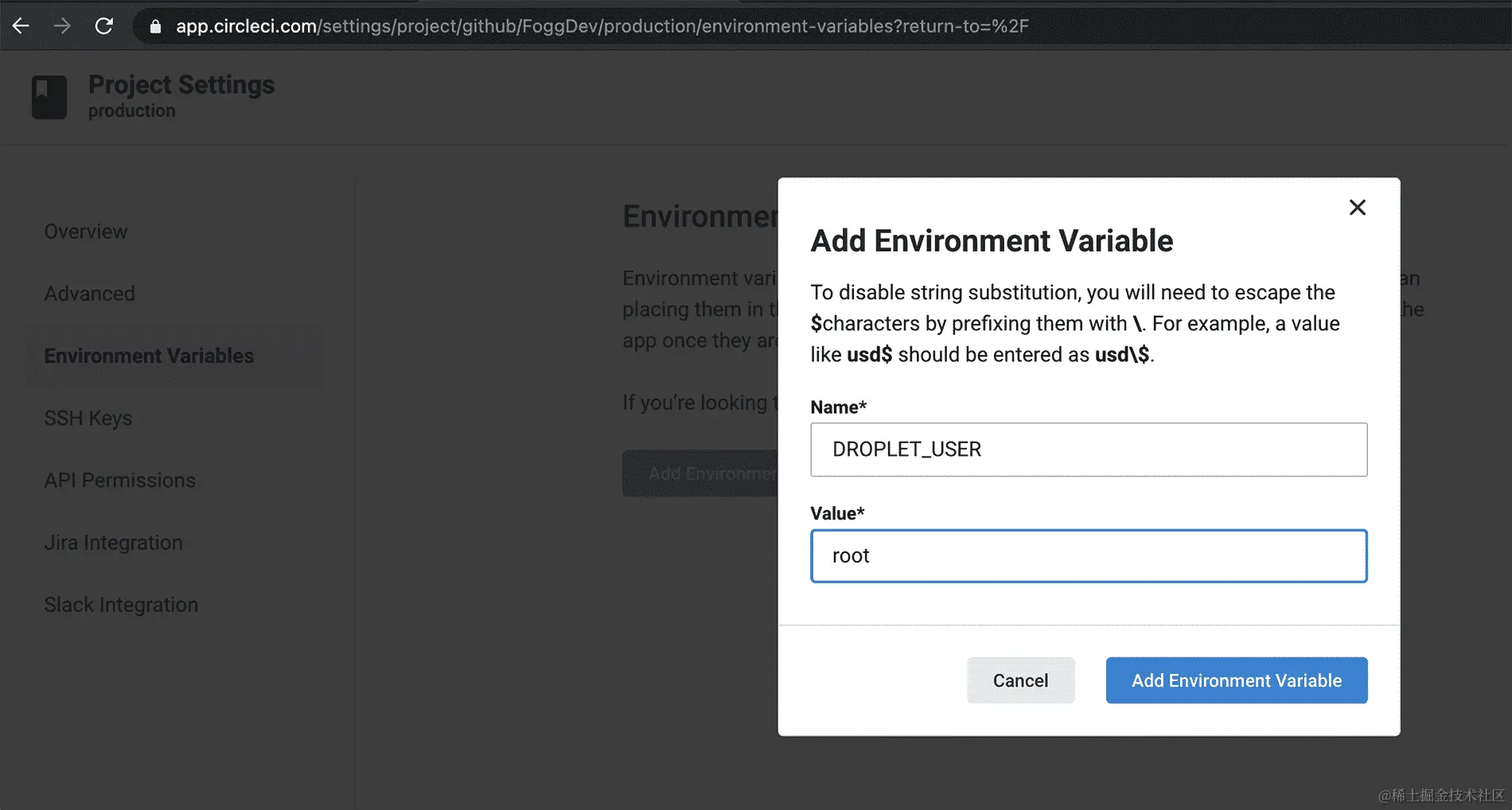 最后,让我们向 CircleCI 添加一些环境变量。