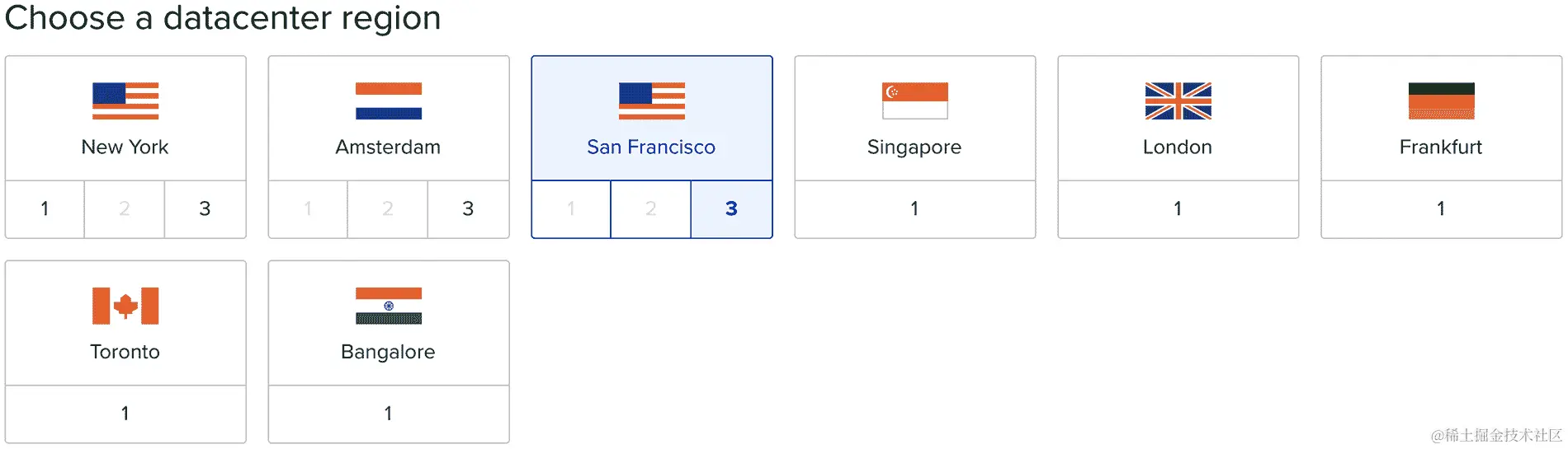 - 选择一个地区。在这种情况下,我们将选择旧金山地区: