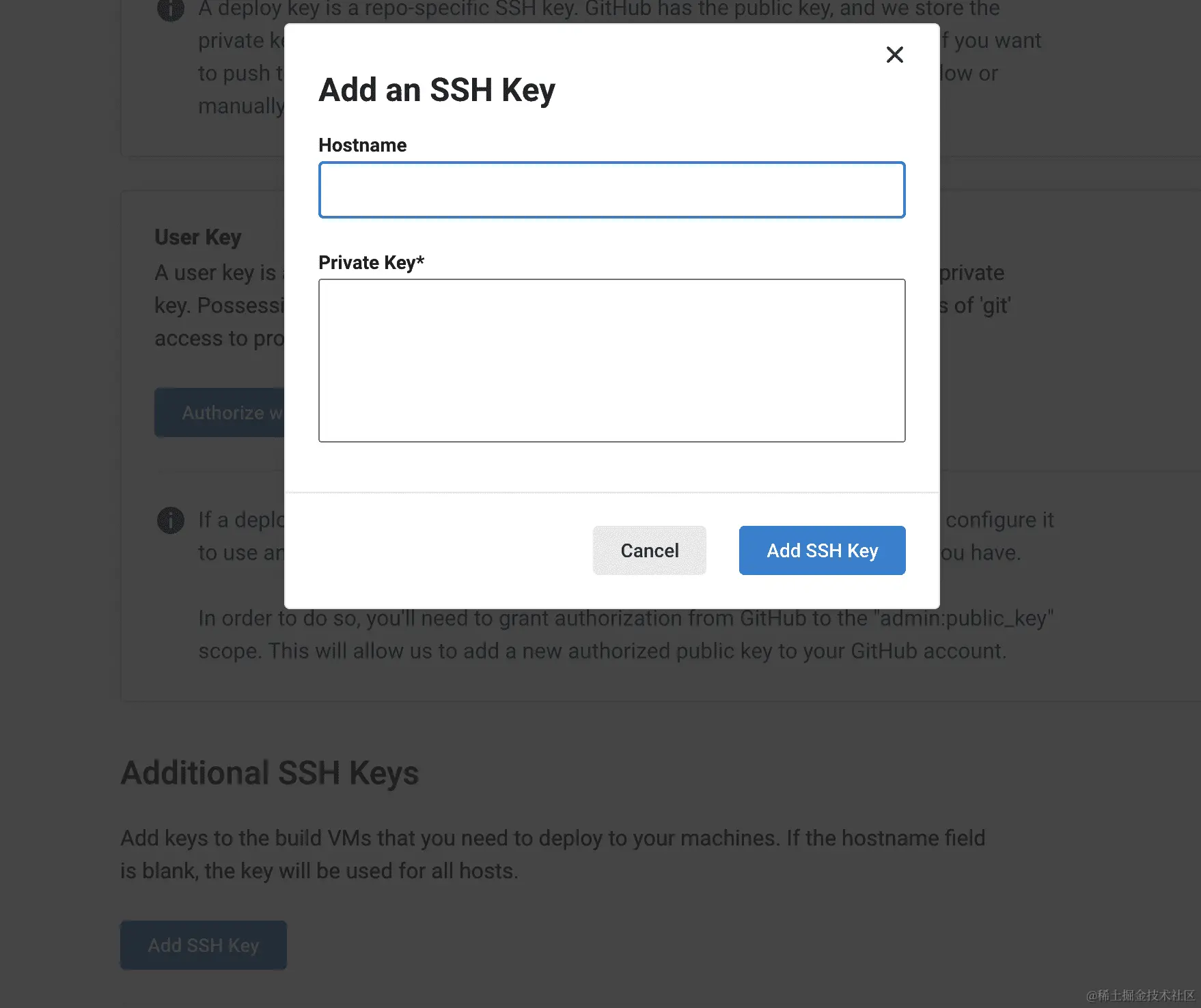 github.com/settings/ssh/new)。然后,在文本区域中粘贴您的密钥并为密钥添加标题:
