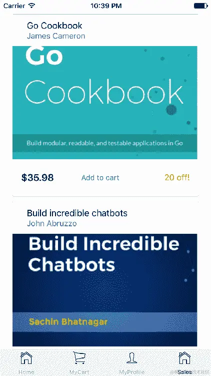 我们将使用 Redux 状态中已经存储的可用产品的完整列表,通过降价来筛选并映射成一个吸引人的列表项,通过触发onBuyPress()方法将其添加到购物车,这将触发addProductToCart():