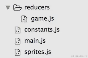 由于这是一个简单的游戏,我们只需要一个屏幕,我们将在其中根据游戏的状态定位所有我们的精灵移动,显示或隐藏它们,这将由 Redux 管理。因此,我们的文件夹结构将符合标准的 Redux 应用程序: