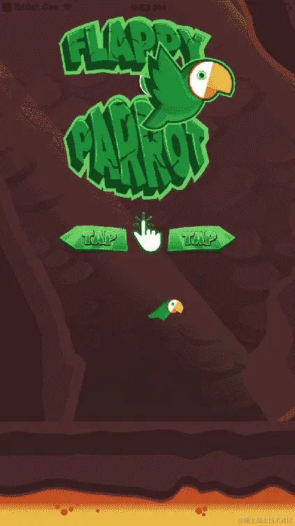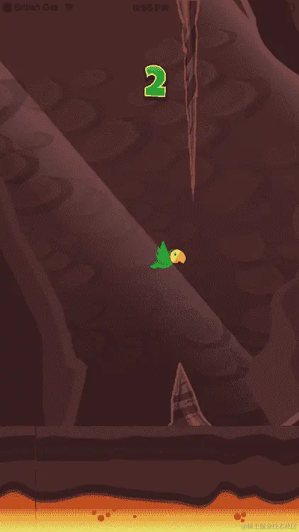 鹦鹉与岩石或地面的任何碰撞都将导致游戏结束