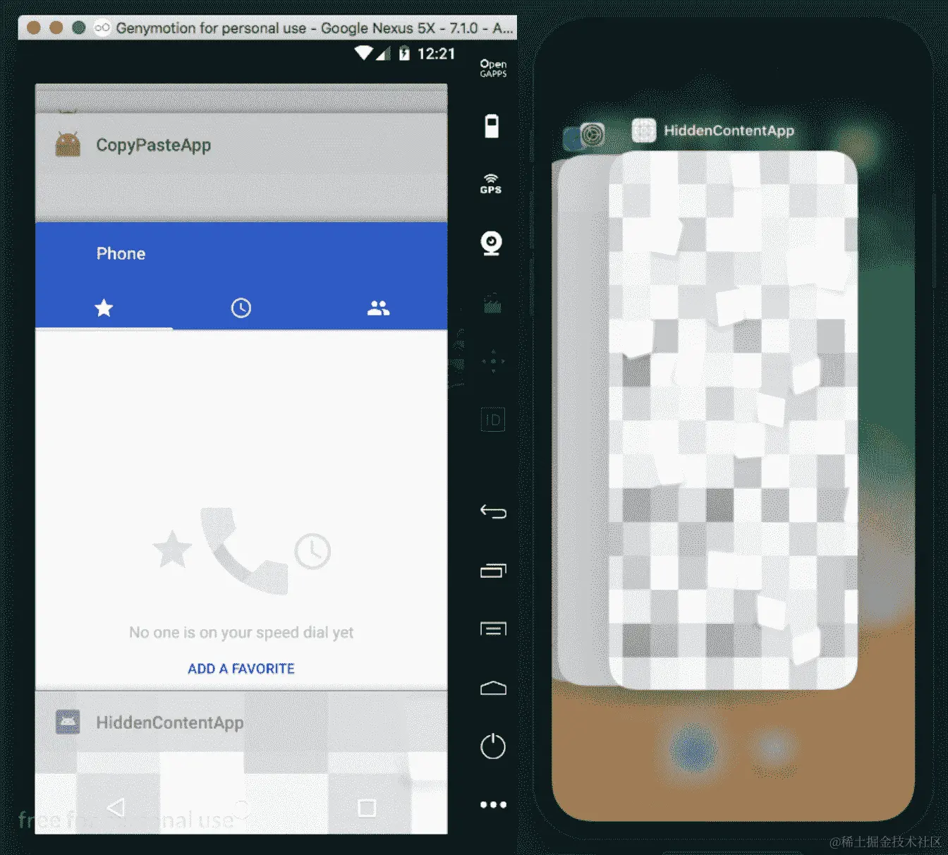 在这个示例中,我们利用了内置的AppState模块。该模块监听 Android 上的Activity事件,在 iOS 上使用NSNotificationCenter在各种UIApplication事件上注册监听器。请注意,两个平台都支持active和background状态;然而,inactive状态是 iOS 独有的概念。由于 Android 的多任务处理实现,它不明确支持inactive状态,因此只在background和active状态之间切换应用程序。要在 Android 上实现等效于 iOS 不活动状态的效果,请参见本章后面的在多任务处理时隐藏应用程序内容示例。