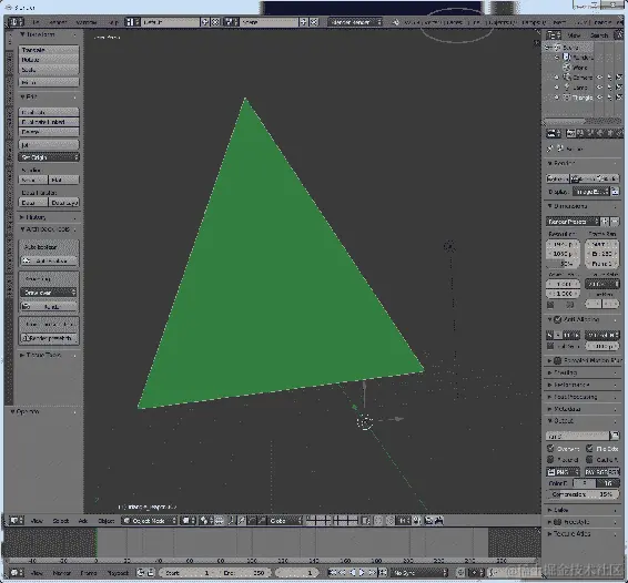 在这种情况下,我用三个顶点和一个面(在这种情况下只是一个纯色,绿色;如果你正在阅读一本实体书或电子墨水阅读器(Kindle),当然会是灰色的一种)构建了一个三角形。边缘以黄色或浅色显示,是为了模型师的方便,不会被显式渲染。