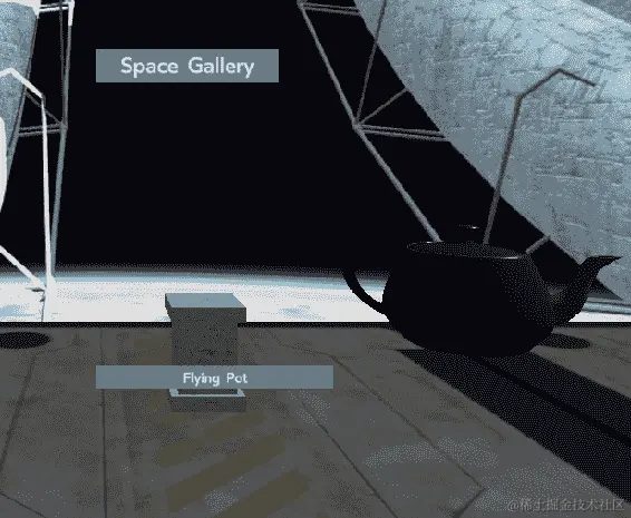 如果你仔细看 Blender 的照片,你会注意到物体并不在世界中心。当导出时,它将以你在 Blender 中应用的平移导出。这就是为什么三角形在基座上略微偏离中心。好消息是我们在外太空中,漂浮在轨道上,因此不必担心重力。(React VR 没有物理引擎,尽管添加一个是很简单的。)