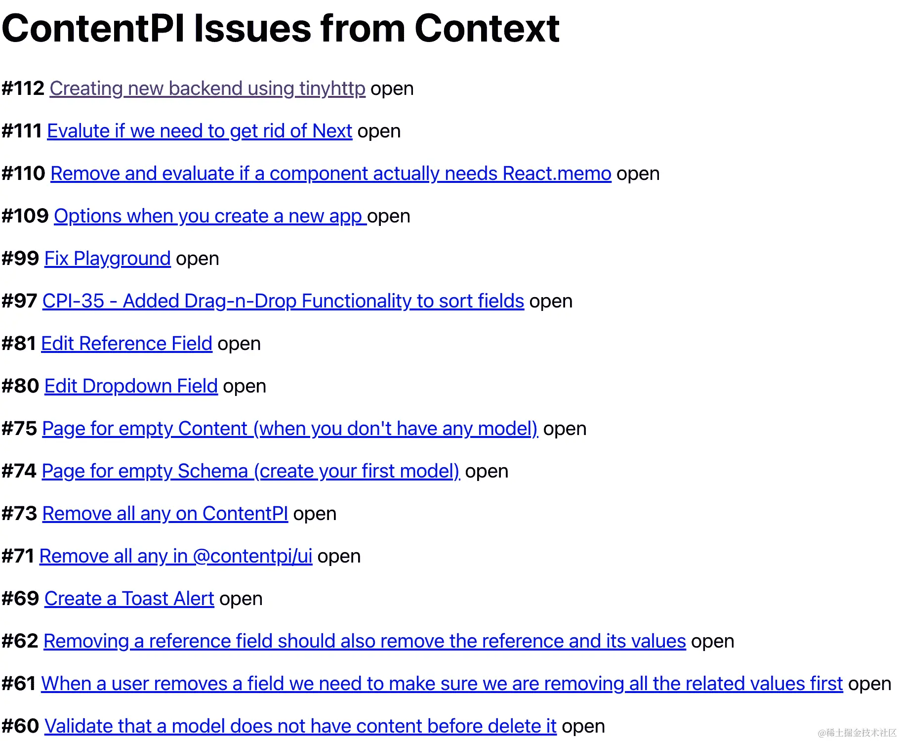 <h1>ContentPI Issues from Context</h1>