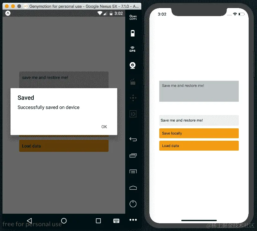 Text元素来呈现保存的内容,一个TextInput组件允许用户输入新值,以及两个按钮。一个按钮将调用onLoad函数来加载当前保存的值,另一个将保存文本输入的值: