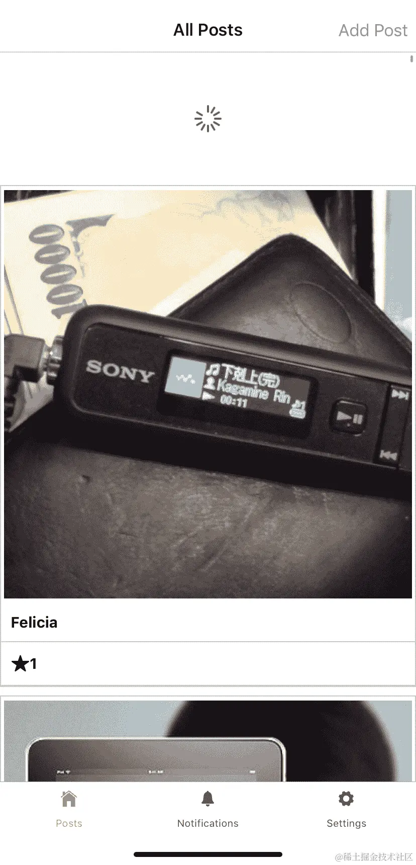 { Posts: PostsStack, + Notifications: NotificationsStack, Settings }, { initialRouteName: 'Posts',