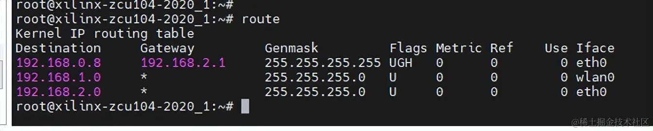 这个目标是网络,所以需要设置子网掩码,用route命令查看一下添加的网络路由