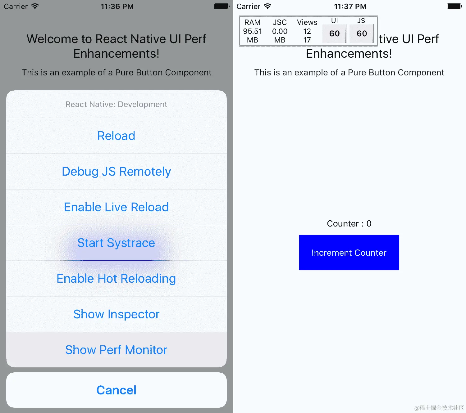 这个教程涵盖了一些更高级和更广泛的适用于所有 React Native 应用程序的技巧。您可能会从这些技巧中看到的最显著的性能提升是将组件移动到本地层,如步骤 7中所述。