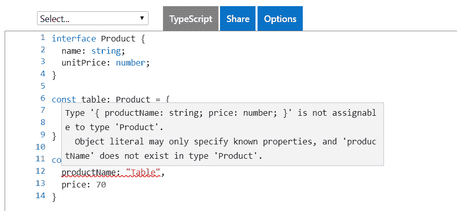www.typescriptlang.org/play/,允许您在不安装 TypeScript 的情况下玩耍并了解其特性。 -