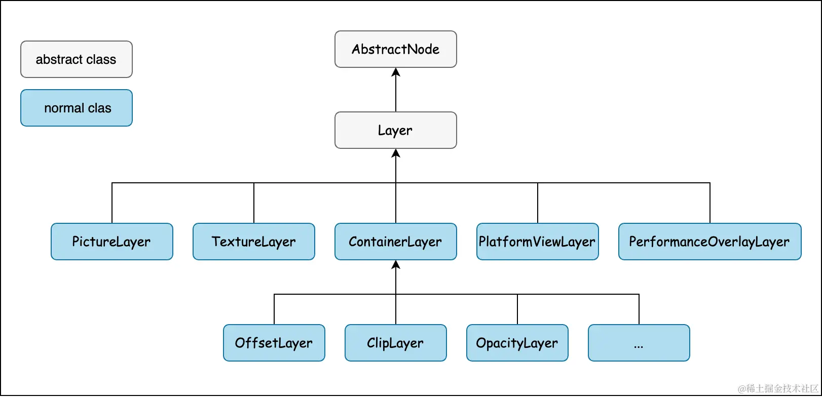 Layer ,是 Flutter 中的图层,继承自 AbstractNode,表明它也是个树形结构,是构成 layer tree 的节点。其中 parent 指向父结点,previousSibling 和 nextSibling 表示同一图层的前一个和后一个兄弟节点,图层的孩子节点们是用双向链表的结构存储的。