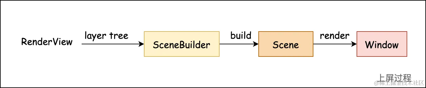 通过 renderView 的 layer 来构建 scene,将整棵layer tree 转换成 scene 对象,从这里开始就都是对图层的操作了。
