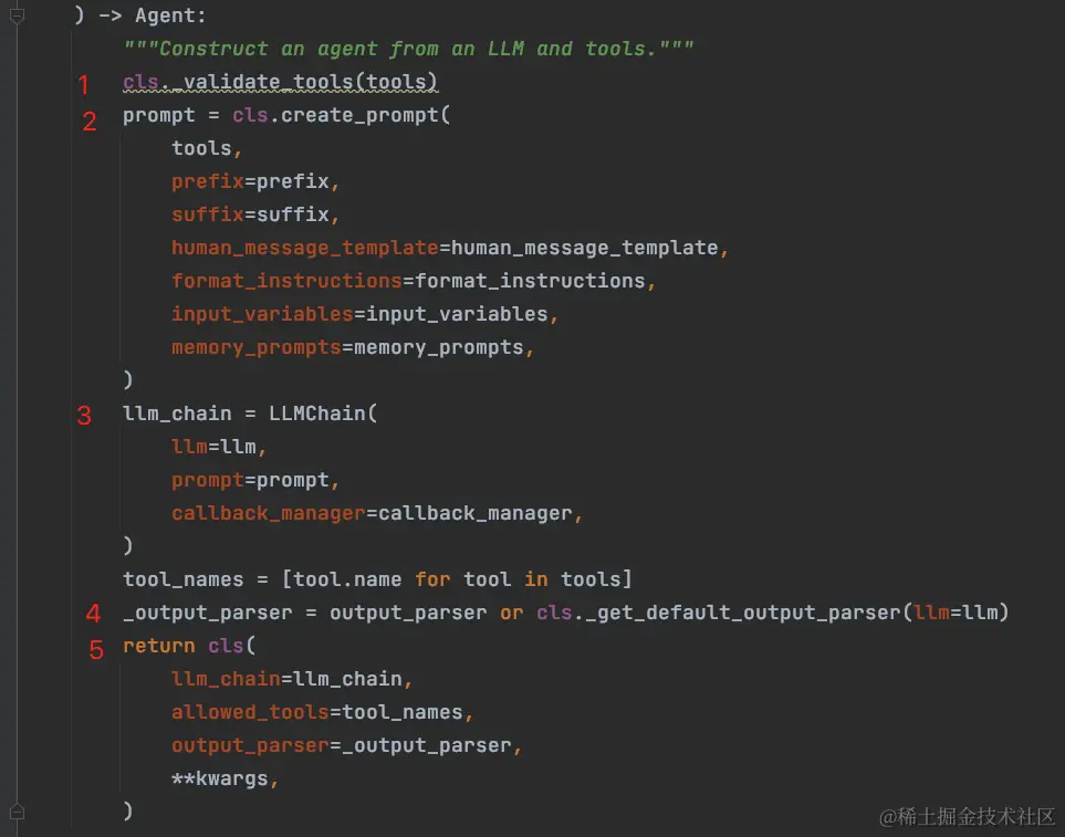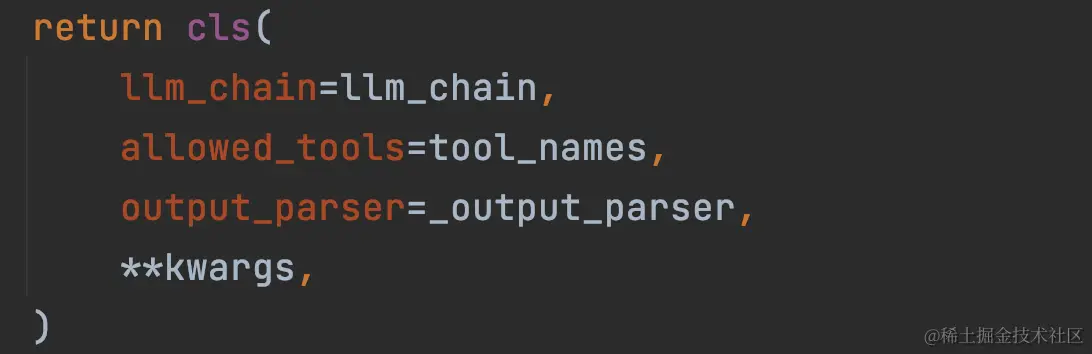 当检验通过,将调用 agent_cls.from_llm_and_tools 方法来初始化 agent 组件。