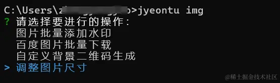 bitmap:这是一个Jimp对象,代表了加载的图片,包含了图片的原始宽度和高度信息。params:这是一个对象,包含了用户通过命令行交互指定的调整参数,主要有:adjustType:用户选择的调整类型,可以是"按比例"或"自定义宽高"。referenceEdge:如果用户选择按比例调整,这个属性指定了参考边是"宽"还是"高"。referenceEdgeLength:用户输入的基准边长度。width和height:如果用户选择自定义宽高,这两个属性会包含用户输入的宽度和高度值。
