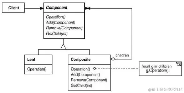 2、使用继承的方式实现叶子类和组合类,叶子类和组合类派生自一个公共的基类 —— 组合(Composite)模式。