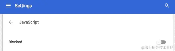 在 Chrome 中测试这个实现只需要更新 Chrome 设置,并在禁用 JS 的标签中加载应用程序。