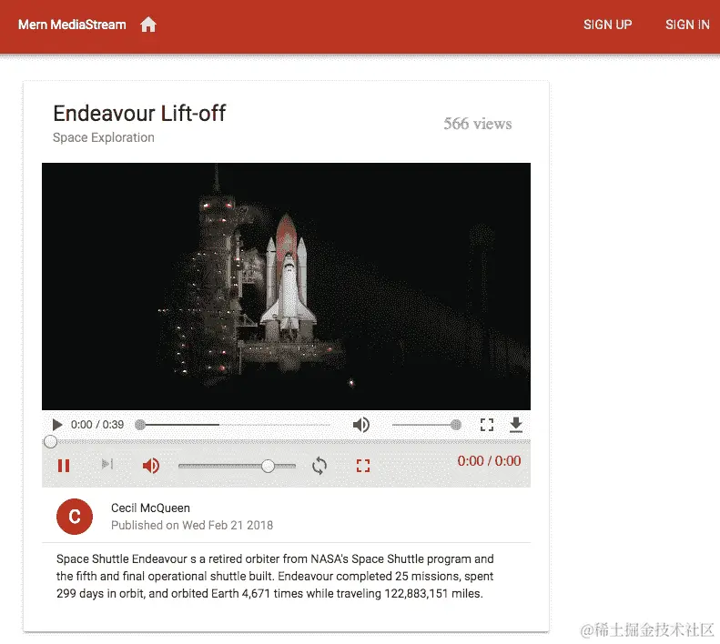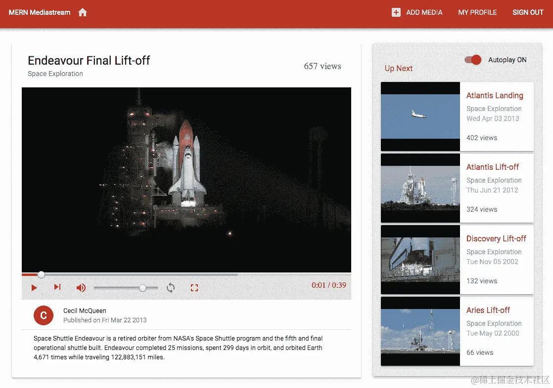 MERN Mediastream 现在拥有完全操作的媒体播放工具,这将允许用户轻松浏览和播放视频。此外,显示单个媒体内容的媒体视图现在经过了服务器端渲染预加载数据的优化,以便搜索引擎优化。