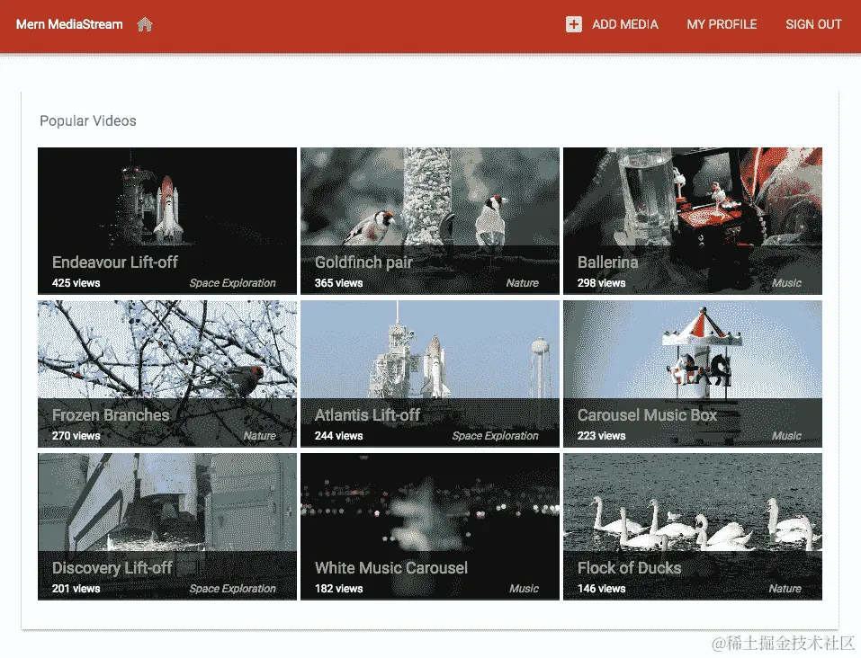 我们将通过扩展基本应用程序来构建 MERN Mediastream 应用程序。这将是一个简单的视频流应用程序,允许注册用户上传视频,任何浏览应用程序的人都可以观看: