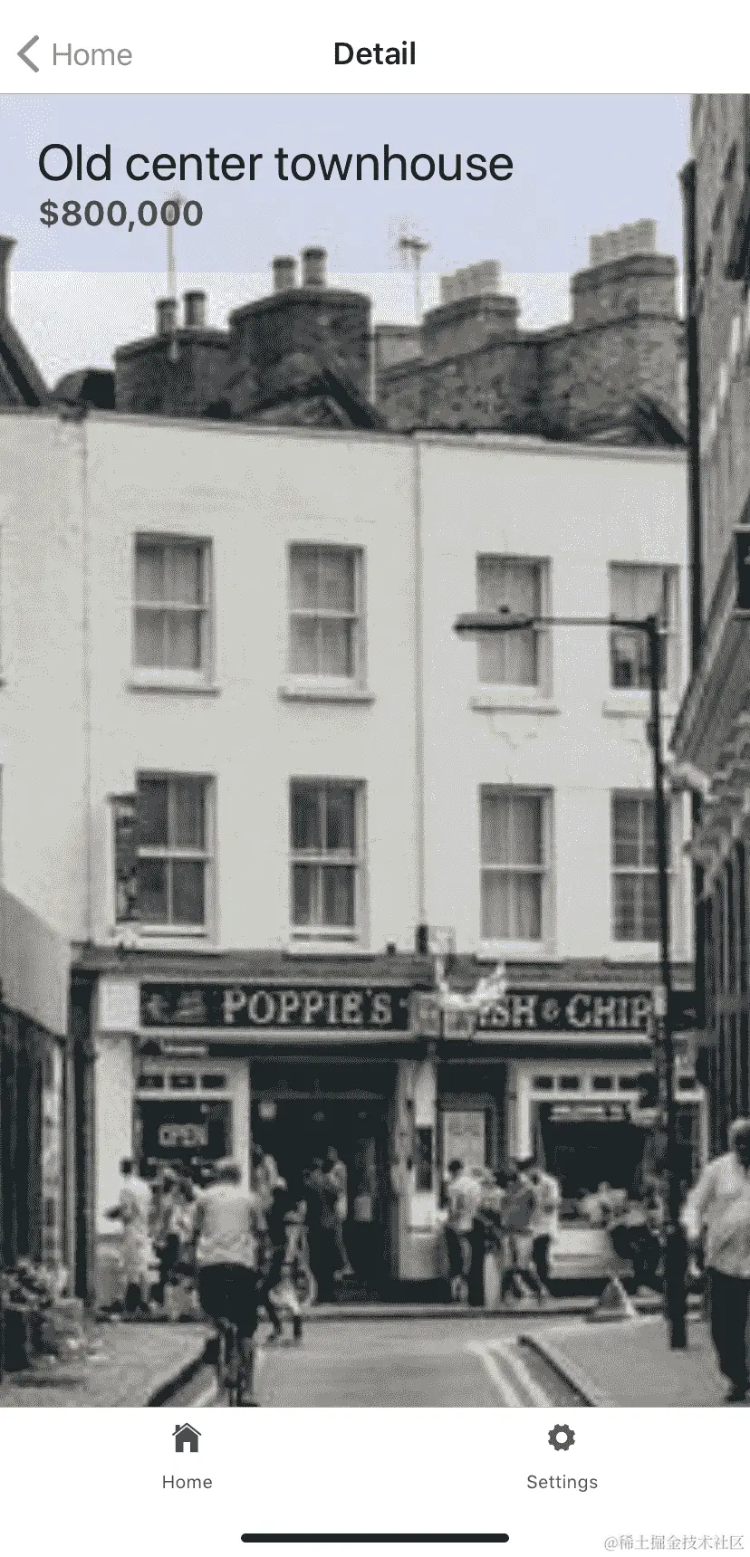 Components/Listing/ListingDetail.ios.js的新文件。这个文件将包含在 Android 上运行的代码的变体,其中图像将使用Dimensions模块在整个屏幕高度上显示。iOS 的ListingDetail组件可以通过将以下代码块粘贴到该文件中来创建: