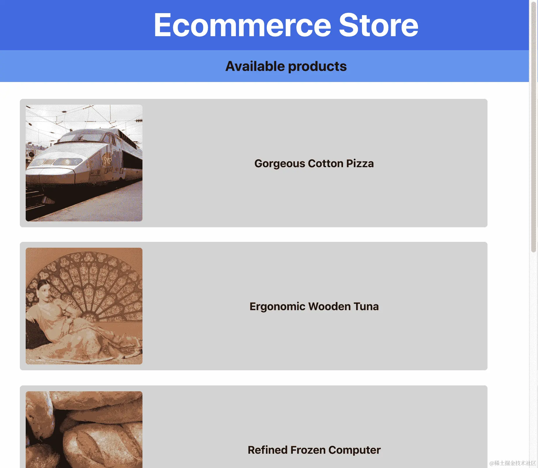 由于 React 应用程序是由 Create React App 创建的,它将自动在浏览器中启动,网址是http://localhost:3000/。这个初始应用程序不显示任何数据,因为它仍然需要连接到 GraphQL 服务器,这将在本章后面进行。因此,此时应用程序将仅呈现一个标题为 Ecommerce Store 的标题和一个子标题,看起来像这样: