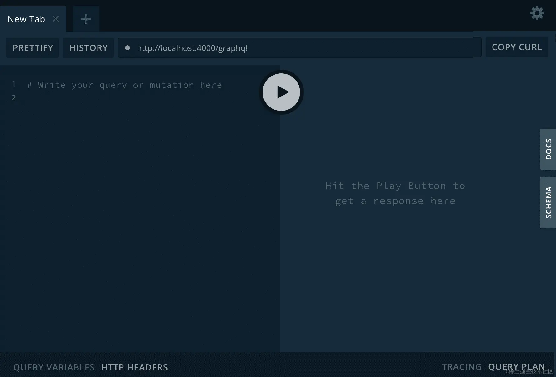 通过这个 Playground,您可以向 GraphQL 服务器发送查询和变异,您可以在本页面的左侧输入。您可以在此 GraphQL 服务器的 SCHEMA 中找到可以发送的查询和变异,点击标有 SCHEMA 的绿色按钮即可找到。该按钮将打开 SCHEMA 的概述,显示 GraphQL 服务器的所有可能返回值: