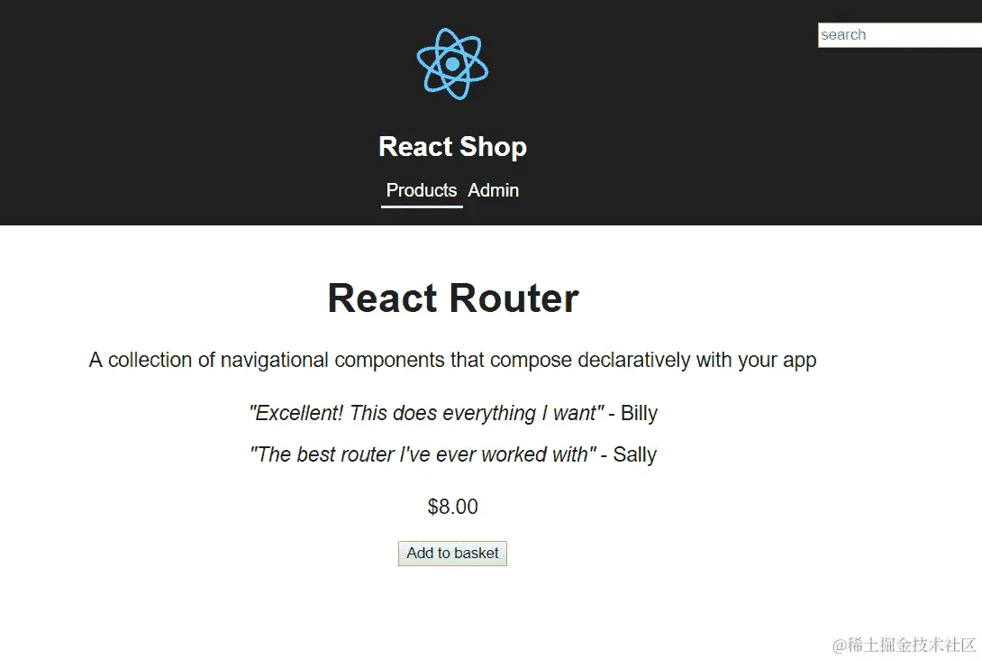 React 商店:我们将从我们在查看 React Router 的章节中开始的项目开始。这可以在 GitHub 上找到:
