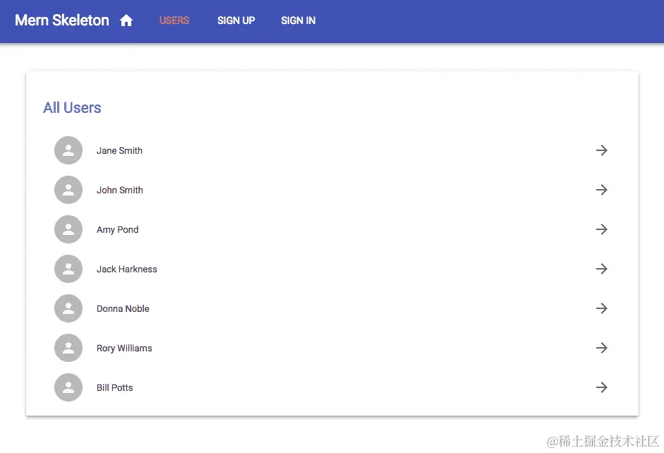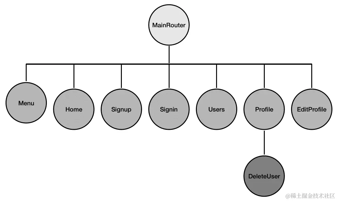 MainRouter将是根 React 组件,其中包含应用程序中的所有其他自定义 React 视图。Home,Signup,Signin,Users,Profile和EditProfile将在使用 React Router 声明的各个路由上呈现,而Menu组件将在所有这些视图中呈现,DeleteUser将成为Profile视图的一部分。
