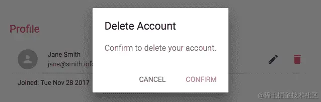 删除用户组件:一个选项,允许已登录用户在确认意图后删除自己的个人资料