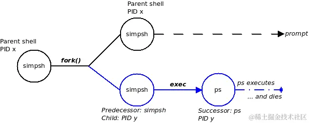 理论上,fork(2)系统调用的工作描述可以简化为一个简单的语句:创建一个调用进程的相同副本。我们将反复遇到的术语如下:调用fork的进程称为父进程,而新创建的、新生的进程称为子进程。