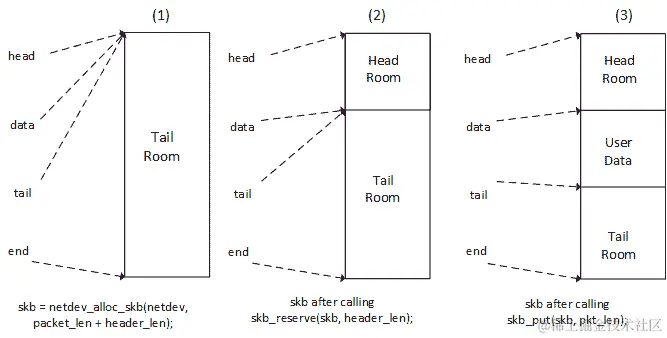 netdev_alloc_skb()函数分配足够大的缓冲区来包含一个数据包以及以太网头部: