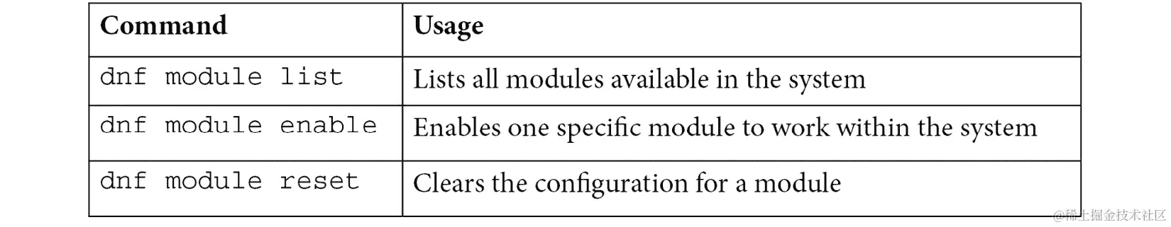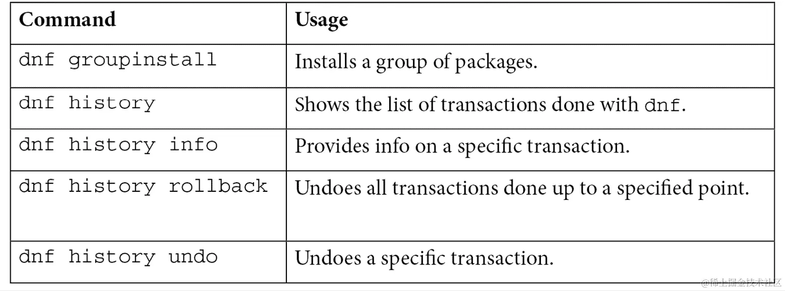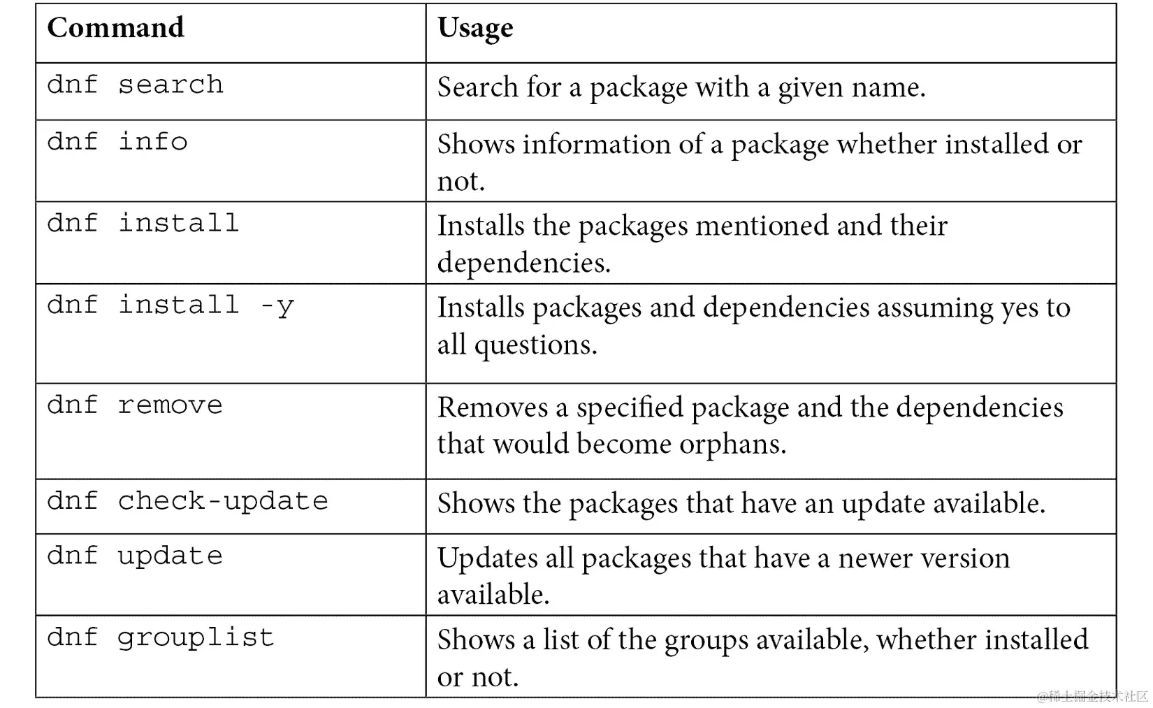 它们在 RHEL8 中可以互换使用。从现在开始,我们将只使用dnf,但请记住,如果您更喜欢yum,请随意使用。