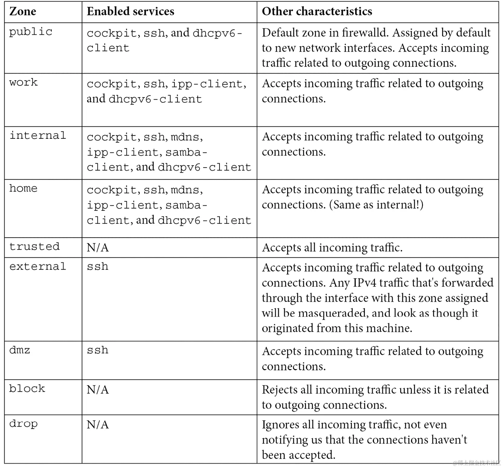 firewalld 中的服务定义保存在/usr/lib/firewalld/services目录中的独立文件中。如果您需要查看服务的详细信息,可以去那里检查文件和其定义。