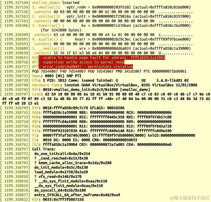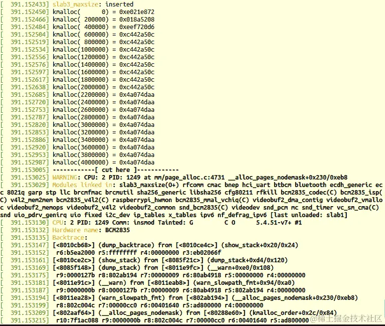 图 9.8 - OOM killer 后的内核日志,显示内核调用堆栈