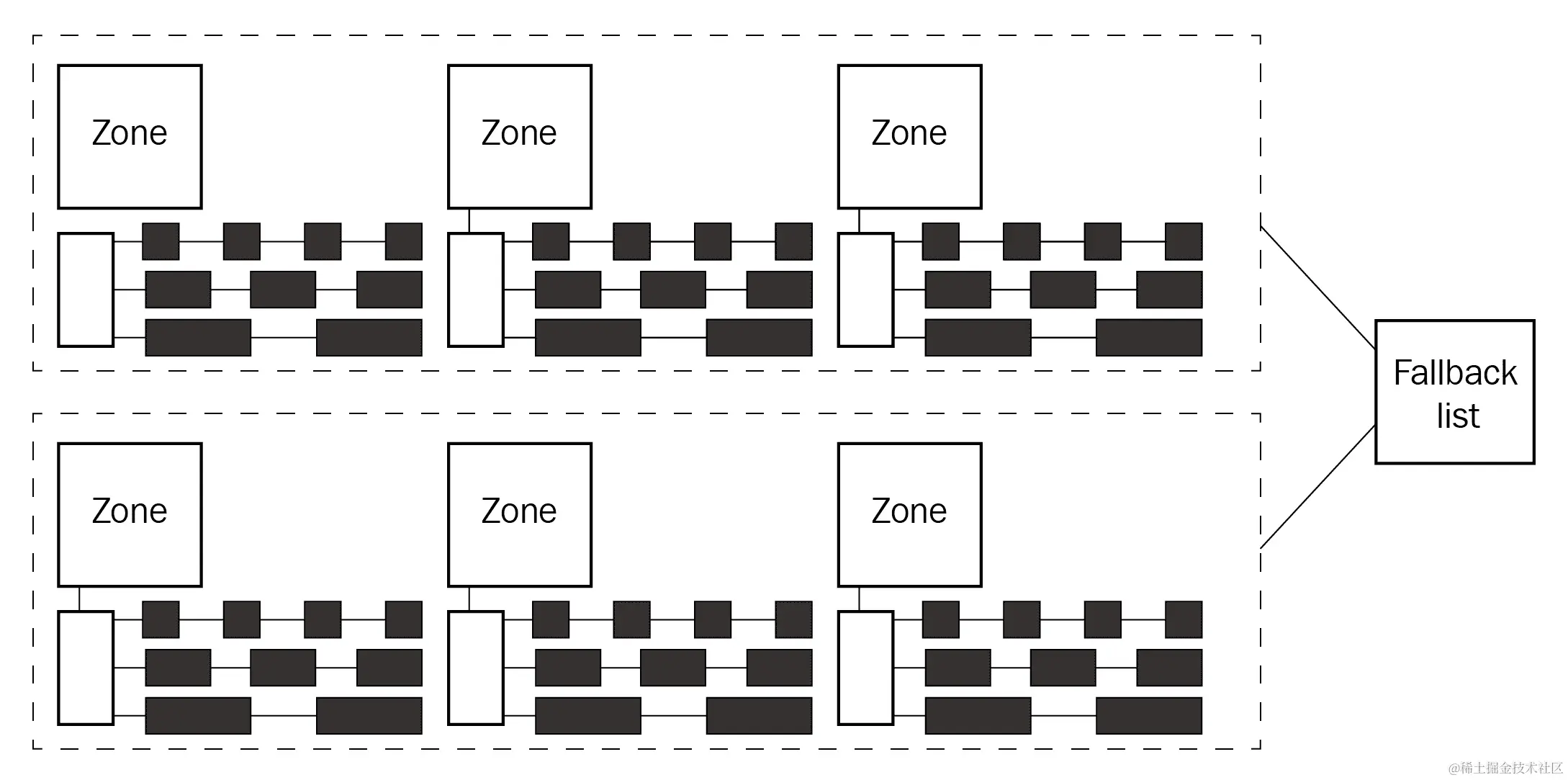 以下图表是对(单个实例的)页面分配器空闲列表的简化概念说明: