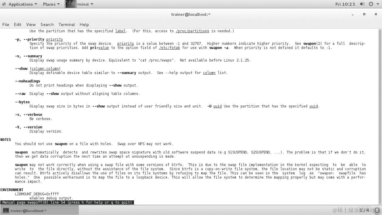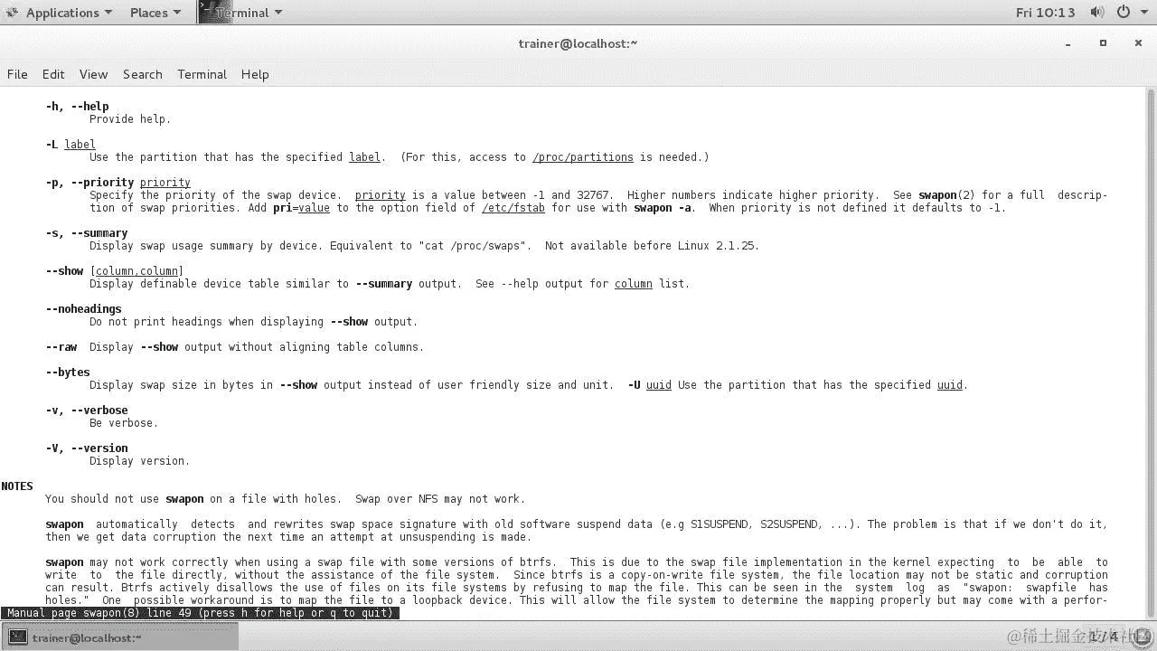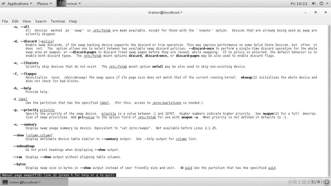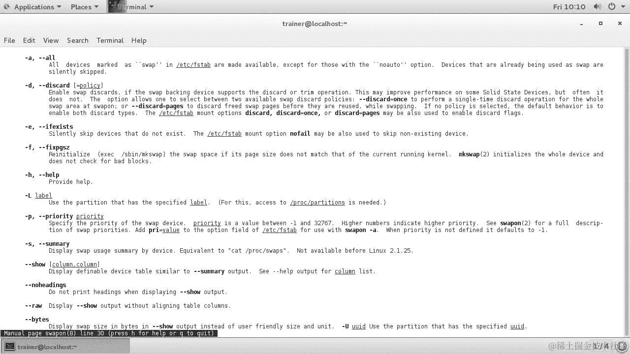 在 CentOS 7 发行版上,swapon命令可以传递更多选项,如下截图所示: