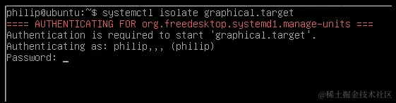 philip@ubuntu:~$ systemctl isolate multi-user.target