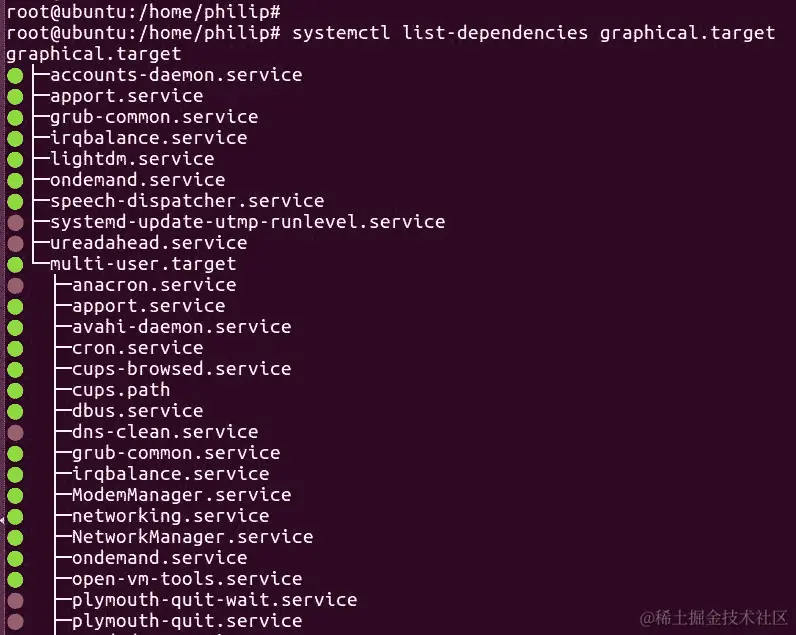 我们可以使用systemctl命令来处理引导目标。我们在本章前面提到了systemctl。让我们使用 Ubuntu 发行版。我们可以通过以下方式实时查看在 shell 中当前默认运行的target: