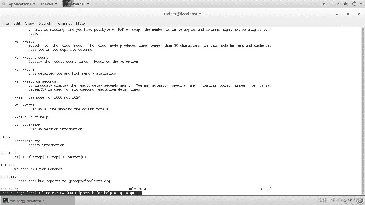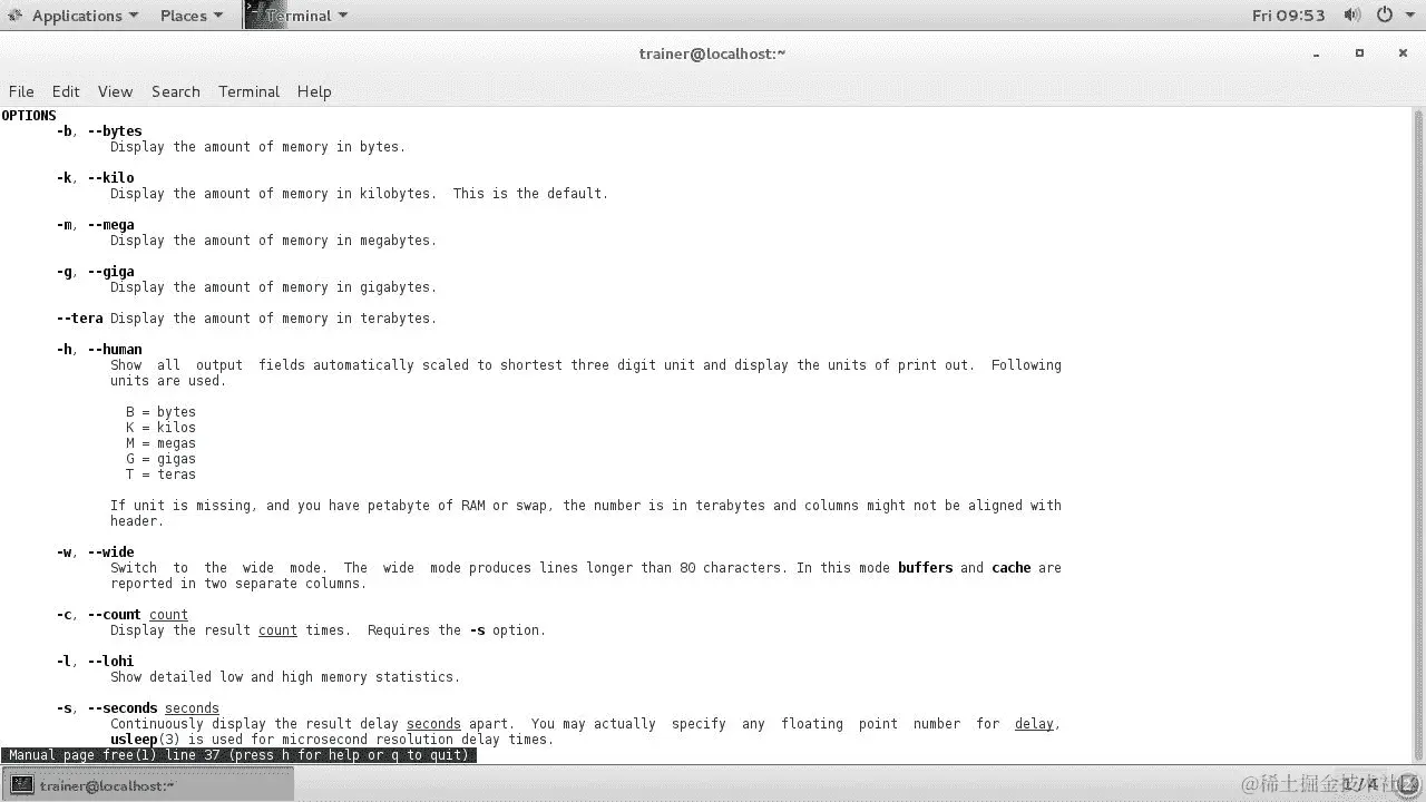 同样,如果我们在 CentOS 7 发行版上查看free命令的主页面,我们可以看到类似的选项:
