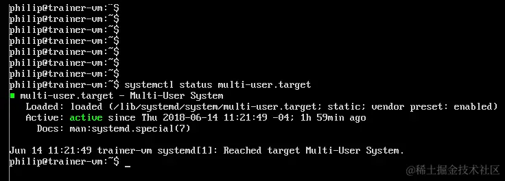 我们也可以运行systemctl来验证multi-user.target的状态: